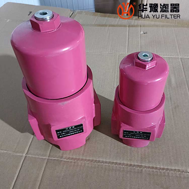 該過濾器的濾芯采用化纖過濾材質,具有過濾精度高,通油能力大,初始壓力損失小,納污量大等優(yōu)點,并裝有壓差發(fā)訊器及旁通閥。當濾芯堵塞到進出油口壓差為0.35MPa時,便發(fā)出開關信號,此時應更換濾芯。如果不能馬上停機或無人來更換濾芯,裝在濾芯上部的旁通閥會自動開啟,以保護系統(tǒng)。