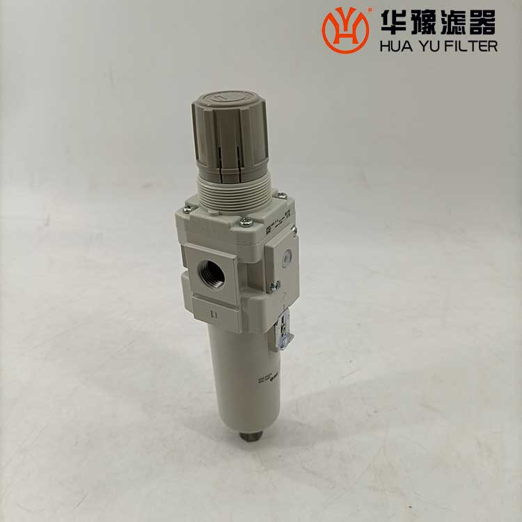 從進口流入的壓縮空氣,經(jīng)導(dǎo)流片的切線方向的缺口強烈旋轉(zhuǎn),液態(tài)油水及固態(tài)污染物受離心作用,被甩到水杯內(nèi)壁上,再流至底部。除去了液態(tài)油水及雜質(zhì)的壓縮空氣,通過濾芯進一步清除微小固態(tài)顆粒,然后從出口流出。 空氣中的溶膠狀的威力是能通過5um的濾芯的,擋水板能防止下部的液態(tài)油水被卷口氣流中,聚積在水杯內(nèi)的冷凝水,按動手動按針,便可以從排水口指出。濾芯有金屬網(wǎng)型、燒結(jié)型和纖維凝聚型。燒結(jié)型有銅珠燒結(jié)、樹脂燒結(jié)和陶瓷燒結(jié)等。銅珠燒結(jié)濾芯的表面和內(nèi)部都起到過濾作用,強度好,***,可清洗幾次重復(fù)使用。纖維凈聚型有樹脂類,人造纖維類材料等。金屬網(wǎng)型知識表面起到過濾作用。